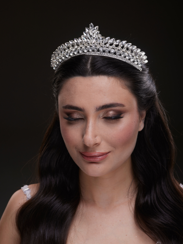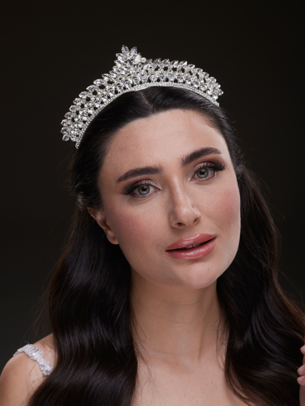 Kristal taşlarla süslenen bu zarif gelin tacı, saç stilinize büyüleyici bir ışıltı kazandırır. El işçiliğiyle üretilmiş parlak taş detaylarıyla modern ve klasik gelinlikleri mükemmel şekilde tamamlar. Hafif ve konforlu yapısı sayesinde uzun saatler boyunca rahat kullanım sağlar. Düğün ve özel davetlerde şıklığınızı ön plana çıkarır.