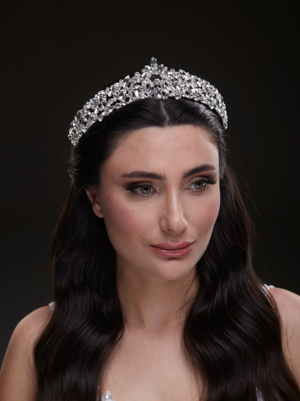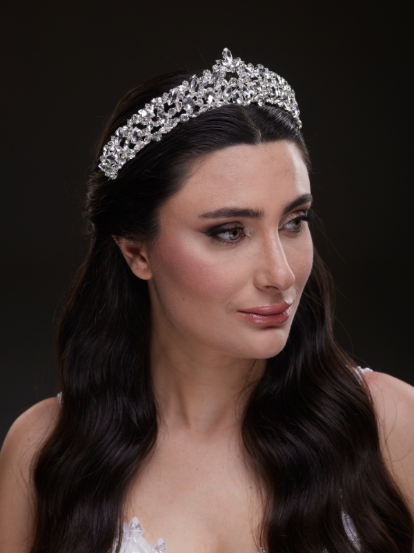 Işıltılı kristal taşlarla tasarlanan bu kraliçe model gelin tacı, zarif ve asil görünümüyle özel gününüzde fark yaratır. El işçiliğiyle hazırlanmış taş detayları ışığı mükemmel yansıtır. Hafif ve dayanıklı yapısıyla uzun süreli konfor sağlar. Düğün, nişan ve özel davetlerde şıklığınızı tamamlayan etkileyici bir aksesuardır.