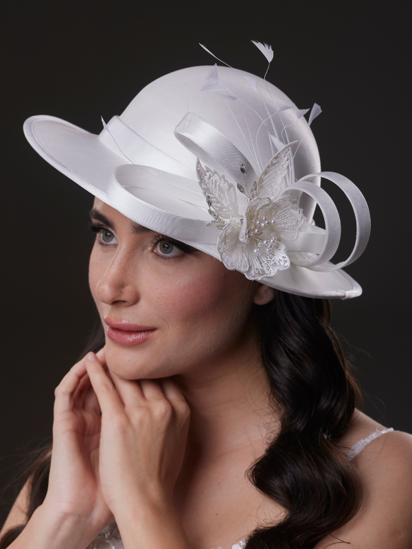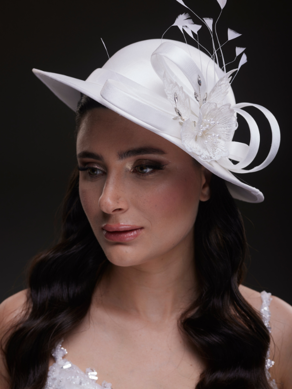 Beyaz Çiçek ve Tül Detaylı Gelin Şapkası – Nikah, Düğün ve Özel Gün Aksesuarı