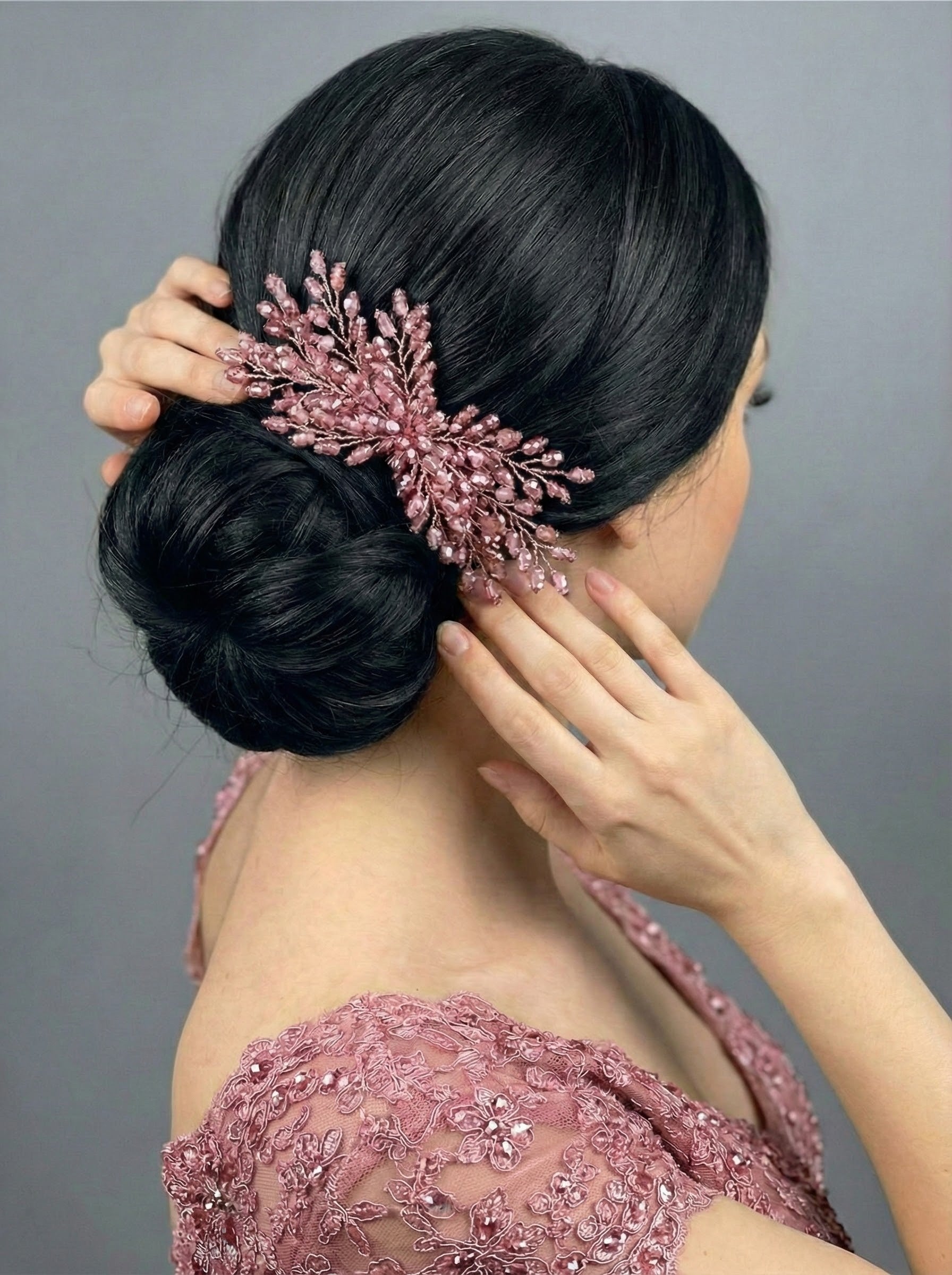 El Yapımı Işıltılı Kristal Saç Tokası – Zarif Örgü Topuzlar İçin Özel Tasarım