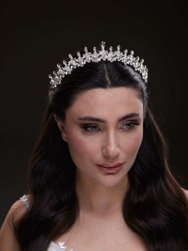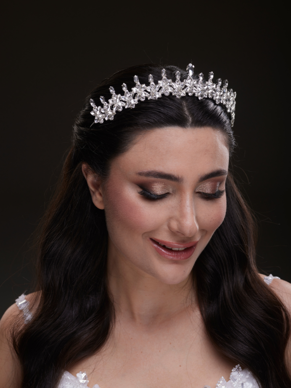 El işçiliğiyle tasarlanan bu ışıltılı kristal taşlı gelin tacı, zarif ve asil duruşuyla gelinliğinizi mükemmel şekilde tamamlar. Parlak taş detayları ışığı büyüleyici şekilde yansıtır. Hafif yapısı sayesinde uzun saatler boyunca konforla kullanılabilir. Düğün, nişan ve özel davetlerde şıklığınızı öne çıkaran ideal bir seçimdir.